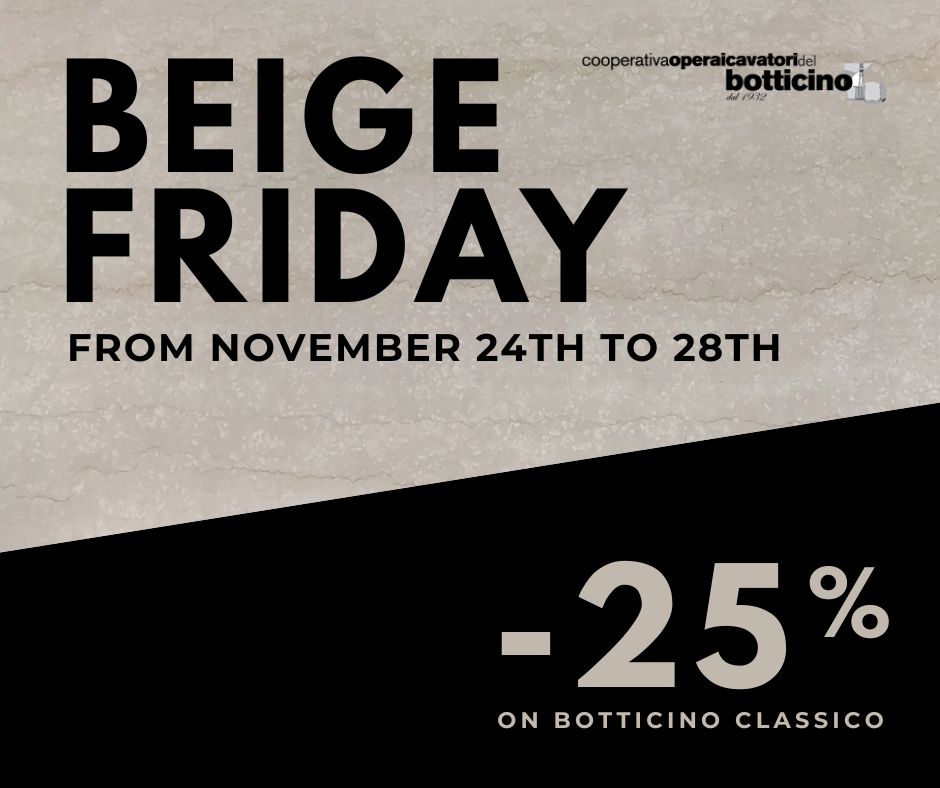 Beige Friday. Del 24 al 28 de noviembre: 25 % de descuento en Botticino Classico