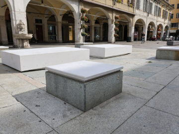 Para este proyecto, hemos creado ocho asientos de mármol Botticino Classico, en colaboración con Marmi Senco Snc: cuatro situados en Corso Zanardelli, en la zona del antiguo Cine Crociera, y cuatro en Corso Palestro.